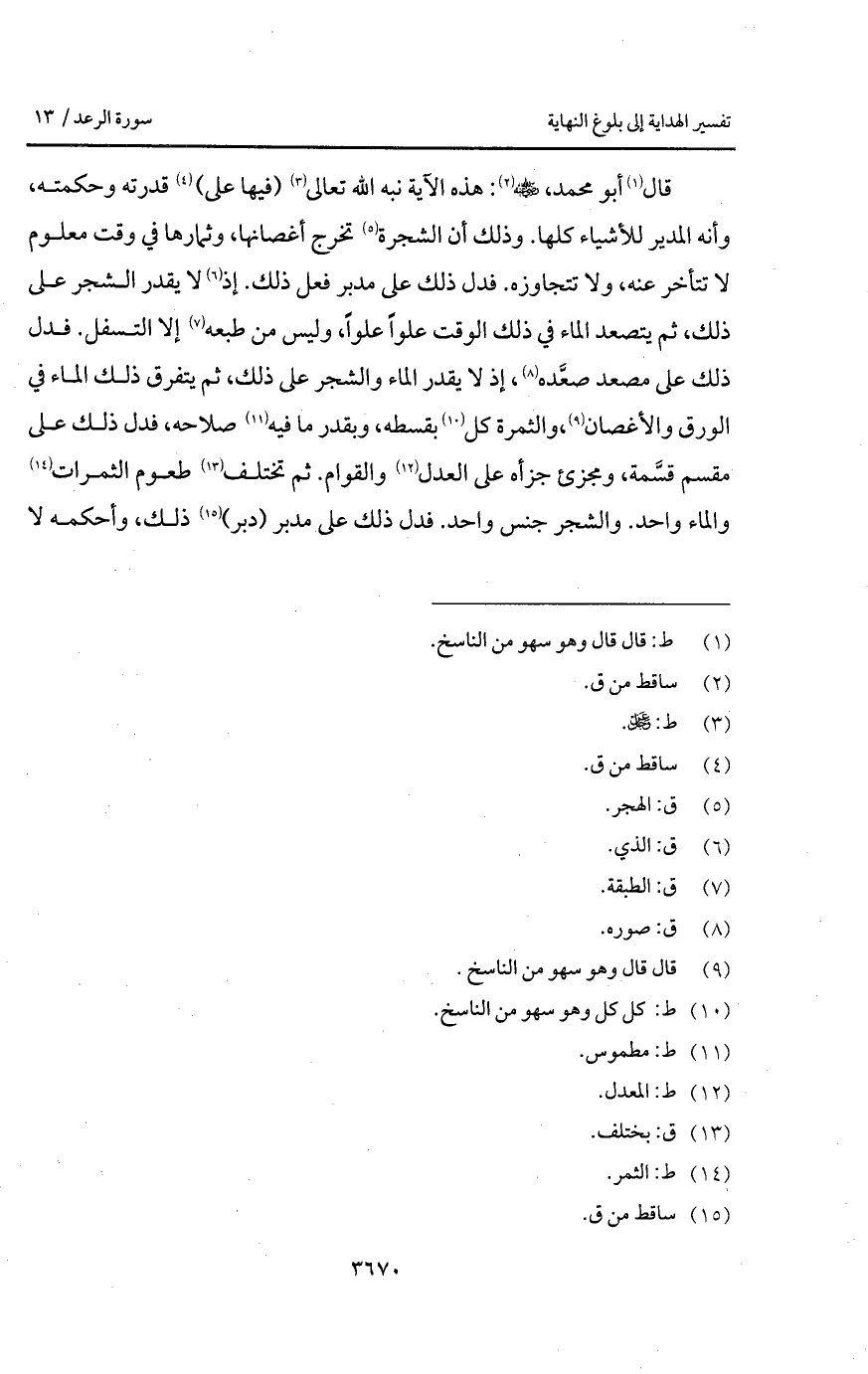قال أبو محمد، Bهـ، هذه الآية نبه الله تعالى (فيها على) قدرته وحكمته، وأنه المدير للأشياء كلها. وذلك أن الشجرة تخرج أغصانها، وثمارها في وقت معلوم لا تتأخر عنه، ولا تتجاوزه. فدل ذلك على مدبر فعل ذلك. إذ لا يقدر الشجر على ذلك، ثم يتصعد الماء في ذلك الوقت علواً علواً، وليس من طبعه إلا التسفل. فدل ذلك على مصدعه صعَّده، إذ لا يقدر الماء والشجر على ذلك، ثم يتفرق ذلك الماء في الورق والأغصان، والثمرة كل بقسطه، وبقدر ما فيه صلاحه، فدل ذلك على مقسم قسَّمه، ومجز جزأه على العدل والقوام. ثم تختلف طعوم الثمرات والماء الواحد. والشجر جنس واحد. فدل ذلك على مدبر (دبر) ذلك، وأحكمه لا