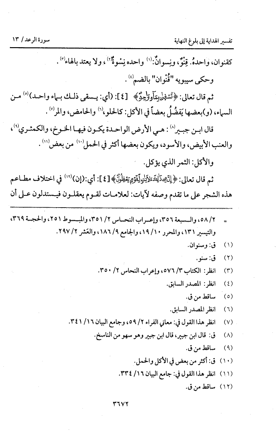 ثم قال تعالى: {يسقى بِمَآءٍ وَاحِدٍ}: (أي: يسقى ذلك بماء واحد) من السماء، (و) بعضها يَفْضُلُ بعضاً في الأكل: كالحلو، والحامض، والمر.