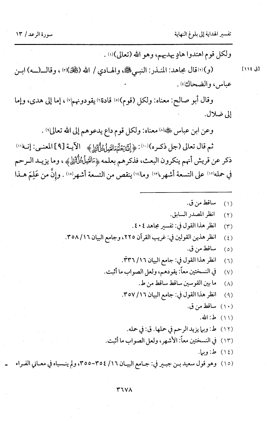 (و) قال مجاهد: المنذر: النبي A، والهادي / الله ( D) ، وقال (هـ) ابن عباس، والضحاك.