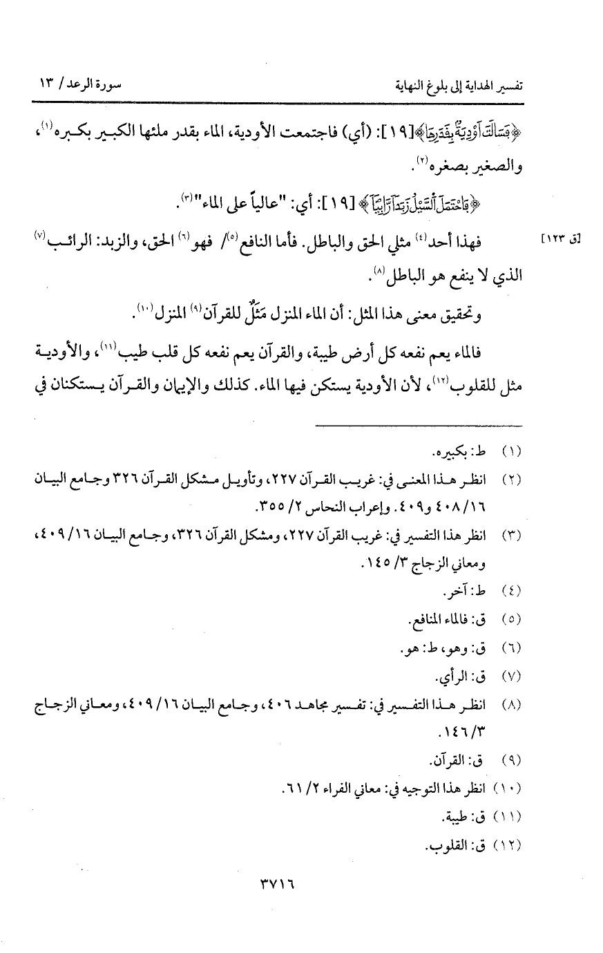 فالماء يعم نفعه كل أرض طيبة، والقرآن يعم نفعه كل قلب طيب، والأودية مثل للقلوب، لأن الأودية يستكن فيها الماء. كذلك والإيمان والقرآن يستكنان في