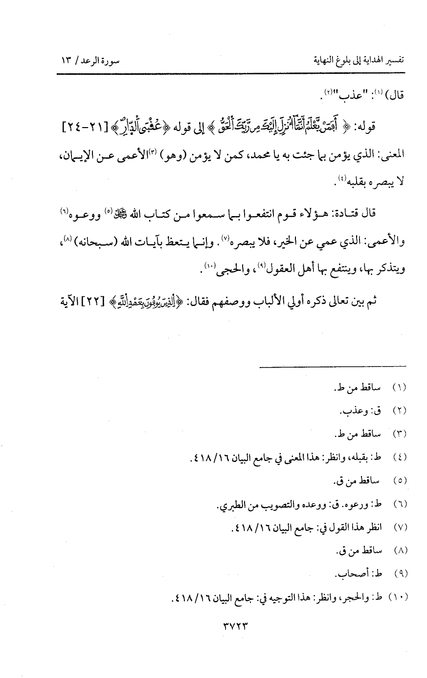 قال قتادة: هؤلاء قوم انتفعوا بما سمعوا من كتاب الله D ووعوه والأعمى: الذي عمي عن الخير، فلا يبصره. وإنما يتعظ بآيات الله (سبحانه)، ويتذكر بها، وينتفع بها أهل العقول، والحجى.
