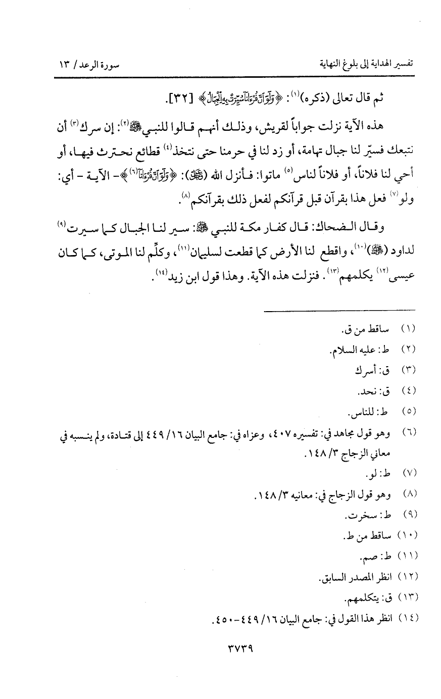 هذه الآية نزلت جواباً لقريش، وذلك أنهم قالوا للنبي A: إن سرك أن نتبعك فسيّر جبال تهامة، أو زد لنا في حرمنا حتى نتخذ قطائع نحترث فيها، أو أحي لنا فلاناً، أو فلاناً لناس ماتوا: فأنزل الله ( D) : { وَلَوْ أَنَّ قُرْآناً} - الآية - أي: ولو فعل هذا بقرآن قبل قرآنكم لفعل ذلك بقرآنكم.