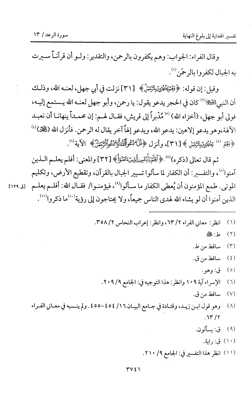 وقال الفراء: الجواب: وهم يكفرون بالرحمن، والتقدير: ولو أن قرآناً سيرت به الجبال لكفروا بالرحمَن.