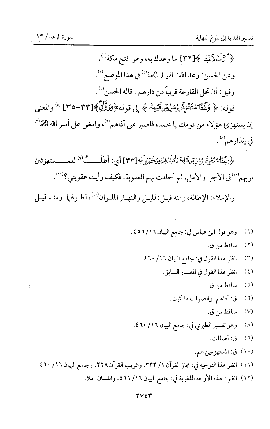 قوله: {وَلَقَدِ استهزئ بِرُسُلٍ مِّن قَبْلِكَ} إلى قوله {مِن وَاقٍ} والمعنى أن يستهزئ هؤلاء من قومك يا محمد، فاصبر على آذاهم، وامض على أمر الله D في إنذارهم.