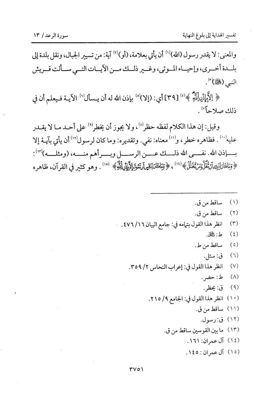 والمعنى: لا يقدر رسول (الله) أن يأتي بعلامة، (أو) آية: من تسيير الجبال، ونقل بلدة إلى بلدة أخرى، وإحياء الموتى، وغير ذلك من الآيات التي سألت قريش النبي ( A) .