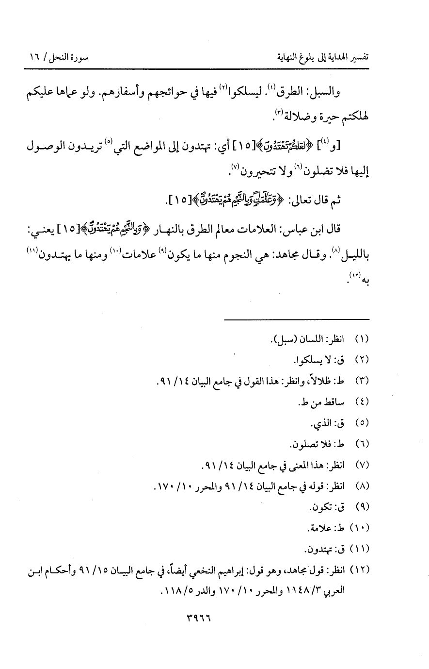 قال ابن عباس: العلامات معالم الطرق بالنهار {وبالنجم هُمْ يَهْتَدُونَ} يعني: بالليل. وقال مجاهد: هي النجوم منها ما يكون علامات ومنها ما يهتدون به.