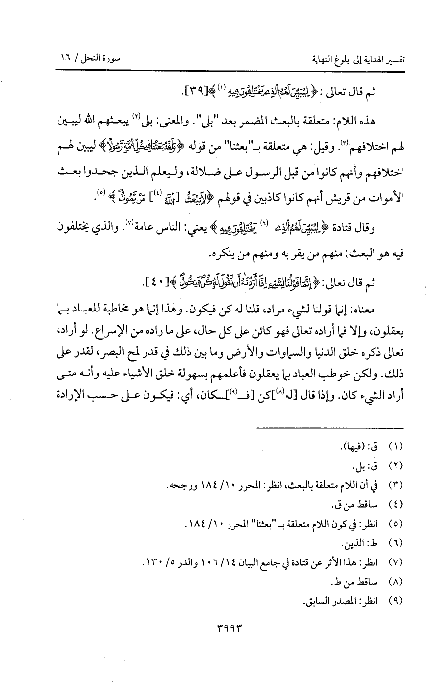 هذه اللام: متعلقة بالبعث المضمر بعد " بلى ". والمعنى: بلى يبعثهم الله ليبين لهم اختلافهم. وقيل: هي متعلقة بـ " بعثنا " من قوله {وَلَقَدْ بَعَثْنَا فِي كُلِّ أُمَّةٍ رَّسُولاً} ليبين لهم اختلافهم وأنهم كانوا من قبل الرسول على ضلالة، وليعلم الذين جحدوا بعث الأموات من قريش أنهم كانوا كاذبين في قولهم {لاَ يَبْعَثُ [الله] مَن يَمُوتُ}.
