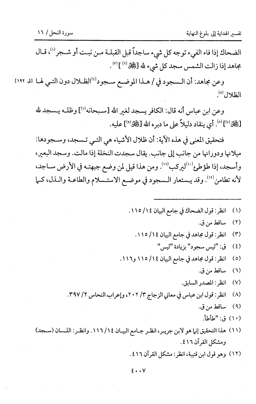 الضحاك إذا فاء الفيء توجه كل شيء ساجداً قبل القبلة من نبت أو شجر، قال مجاهد إذا زالت الشمس سجد كل شيء لله [ D] .