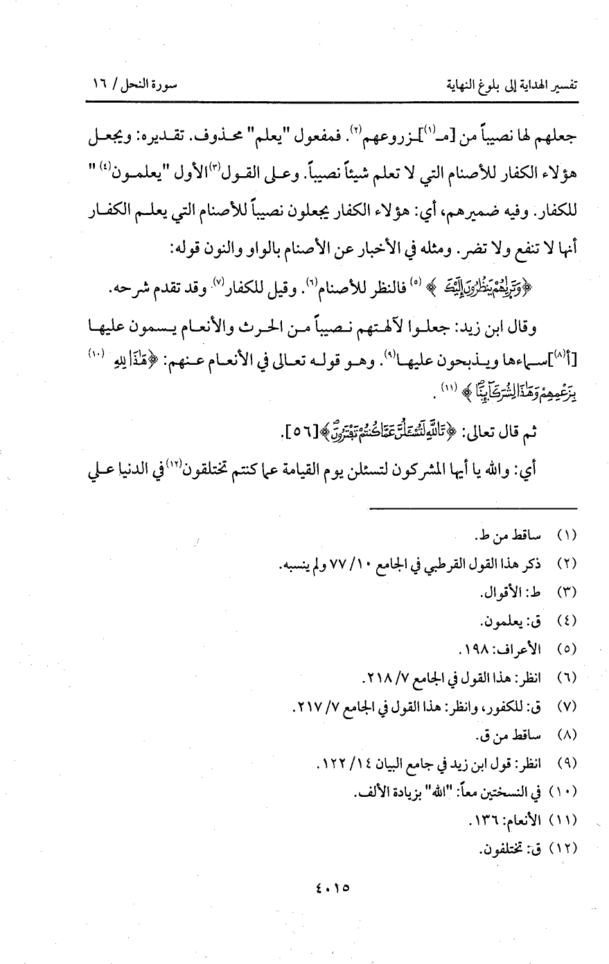 جعلهم لها نصيباً من [م [زروعهم. فمفعول " يعلم " محذوف. تقديره: ويجعل هؤلاء الكفار للأصنام التي لا تعلم شيئاً نصيباً. وعلى القول الأول " يعلمون " للكفار. وفيه ضميرهم، أي: هؤلاء الكفار يجعلون نصيباً للأصنام التي يعلم الكفار أنها لا تنفع ولا تضر. ومثله في الأخبار عن الأصنام بالواو والنون قوله: