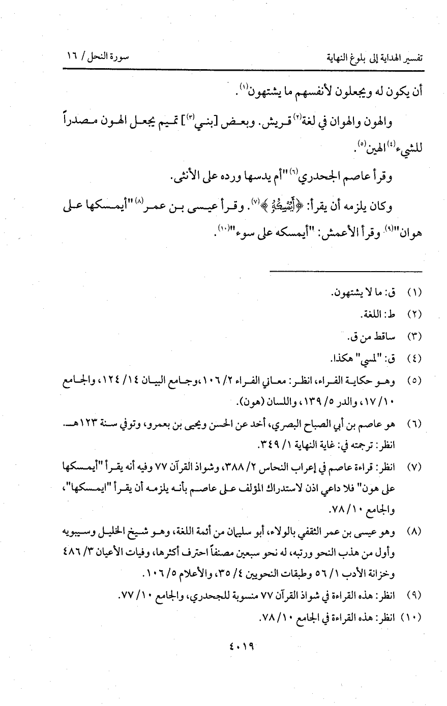 وكان يلزمه أن يقرأ: {أَيُمْسِكُهُ}. وقرأ عيسى بن عمر " أيمسكها على هوان " وقرأ الأعمش: " أيمسكه على سوء ".