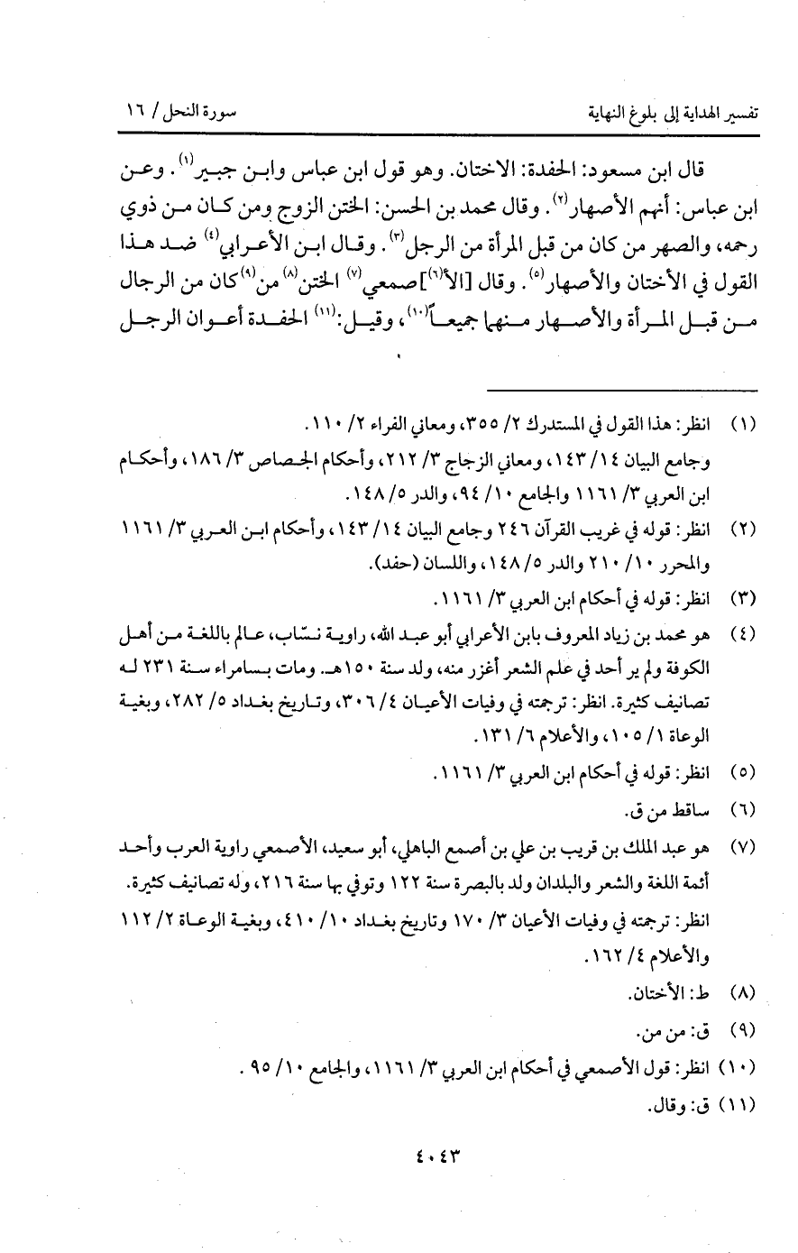 قال ابن مسعود: الحفدة: الاختان. وهو قول ابن عباس وابن جبير. وعن ابن عباس: أنهم الأصهار. وقال محمد بن الحسن: الختن الزوج ومن كان من ذوي رحمه، والصهر من كان من قبل المرأة من الرجل. وقال ابن الأعربي ضد هذا القول في الأختان والأصهار. وقال [الأ] صمعي الختن من كان من الرجال من قبل المرأة والأصهار منهما جميعاً، وقيل: الحفدة أعوان الرجل