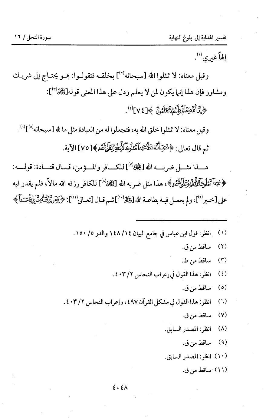 قال تعالى: {ضَرَبَ الله مَثَلاً عَبْداً مَّمْلُوكاً لاَّ يَقْدِرُ على شَيْءٍ} الآية.