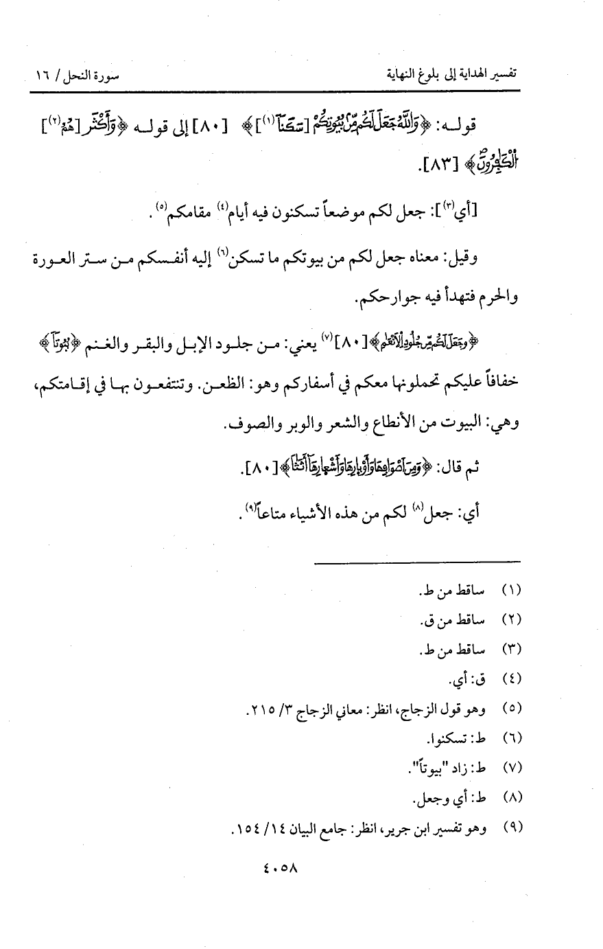 قوله: {والله جَعَلَ لَكُمْ مِّن بُيُوتِكُمْ [سَكَناً]}.