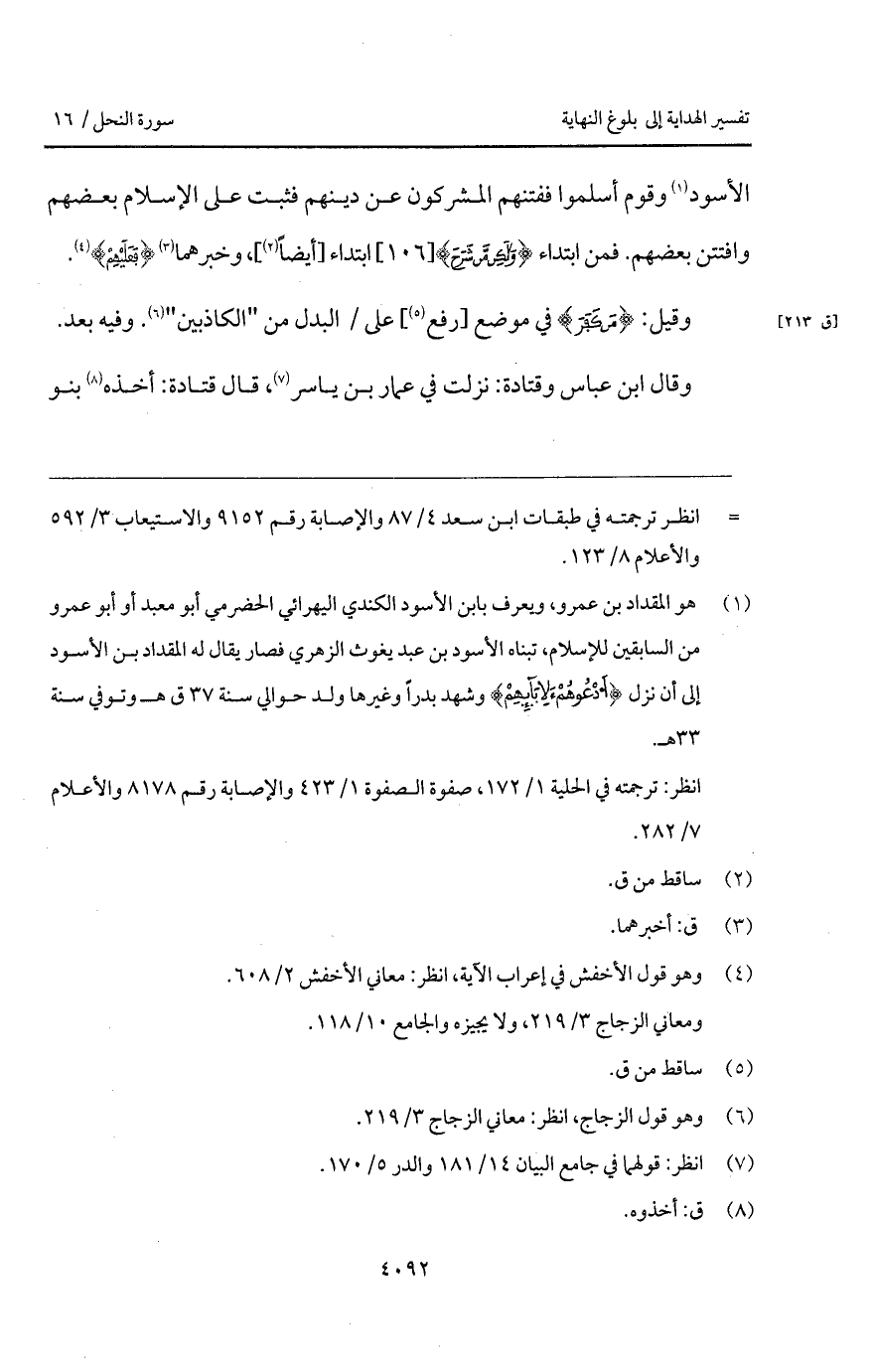 وقال ابن عباس وقتادة: نزلت في عمار بن ياسر، قال قتادة: أخذه بنو