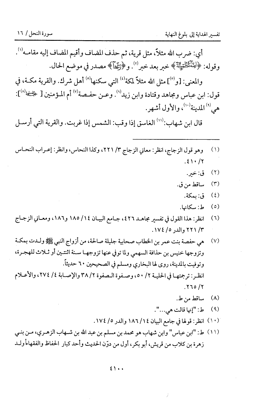 قال ابن شهاب: الغاسق إذا وقب: الشمس إذا غربت. والقرية التي أرسل