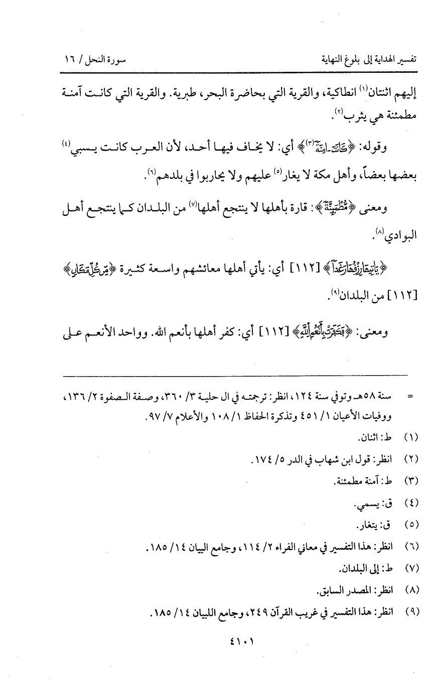 إليهم اثنتان انطاكية، والقرية التي بحاضرة البحر، طبرية. والقرية التي كانت آمنة مطمئنة هي يثرب.
