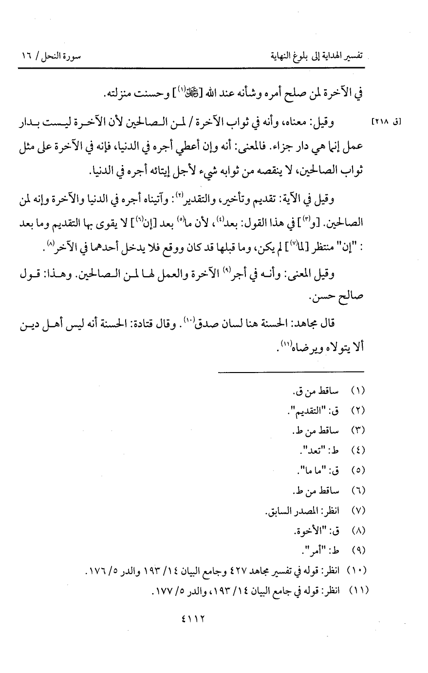 وقيل في الآية: تقديم وتأخير، والتقدير: وآتيناه أجره في الدنيا والآخرة وإنه لمن الصالحين. [و] في هذا القول: بعد، لأن ما بعد [إن] لا يقوى بها التقديم وما بعد: " إن " منتظر [لما] لم يكن، وما قبلها قد كان ووقع فلا يدخل أحدهما في الآخر.