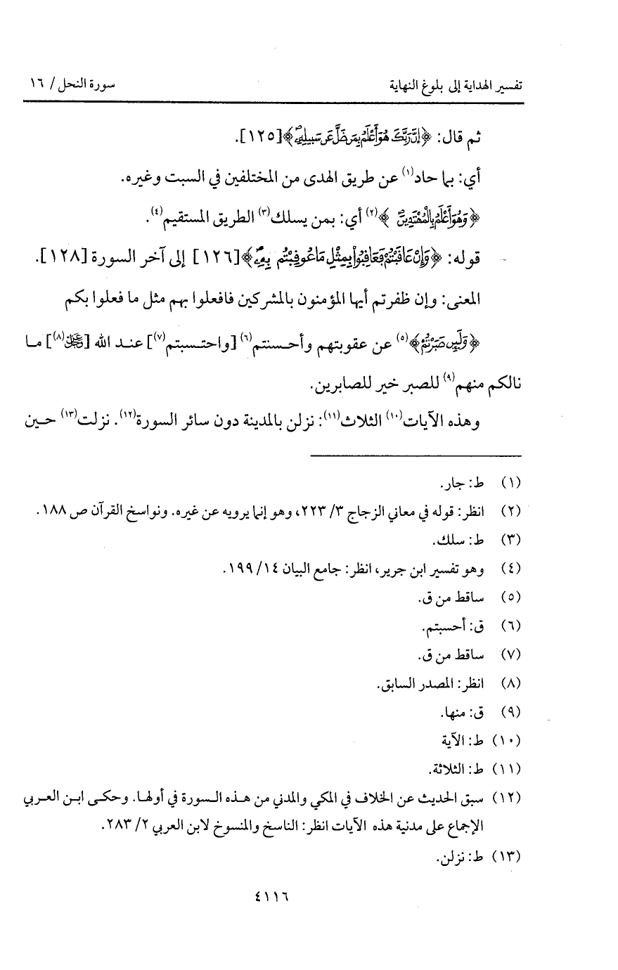 قوله: {وَإِنْ عَاقَبْتُمْ فَعَاقِبُواْ بِمِثْلِ مَا عُوقِبْتُمْ بِهِ} إلى آخر السورة.