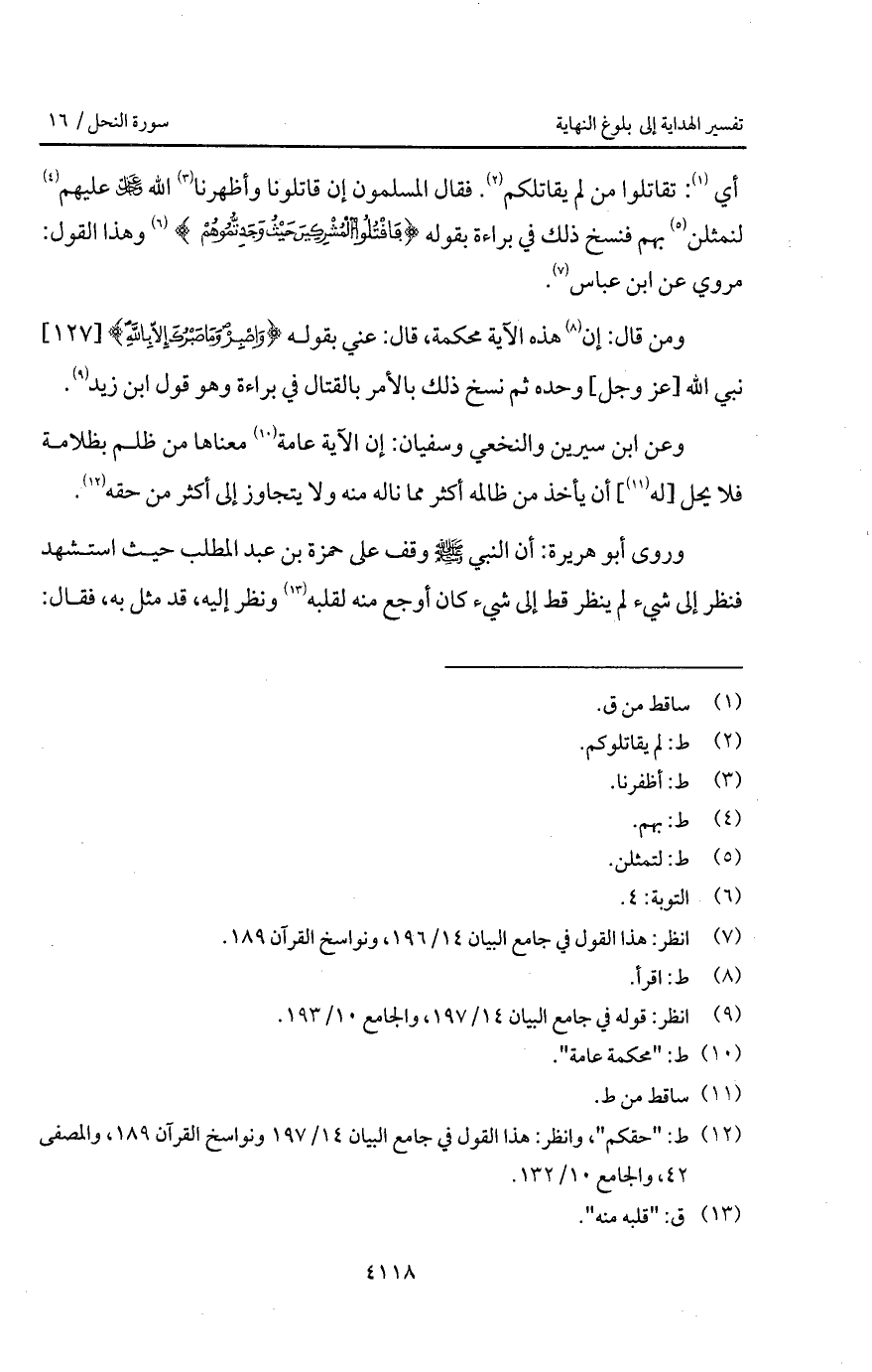 أي: تقاتلوا من لم يقاتلكم. فقال المسلمون إن قاتلونا وأظهرنا الله D عليهم لنمثلن بهم فنسخ ذلك في براءة بقوله {فاقتلوا المشركين حَيْثُ وَجَدتُّمُوهُمْ} [التوبة: 5] وهذا القول: مروي عن ابن عباس.