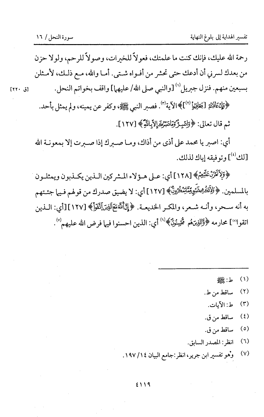 رحمة الله عليك، فإنك كنت ما علمتك، فعولاً للخيرات، وصولاً للرحم، ولولا حزن من بعدك لسرني أن أدعك حتى تحشر من أفواه شتى. أما والله، مع ذلك، لأمثلن بسبعين منهم. فنزل جبريل [والنبي صلى الله / عليهما] واقف بخواتم النحل ".