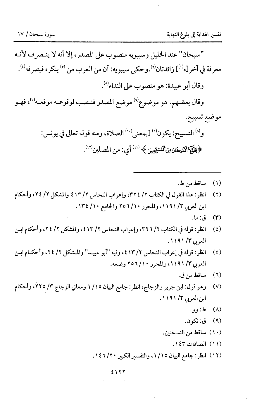 " سبحان: عند الخليل وسيبويه منصوب على المصدر، إلا أنه لا ينصرف لأنه معرفة في آخر [هـ] زائدتان. وحكى سيبويه: أن من العرب من ينكره فيصرفه.