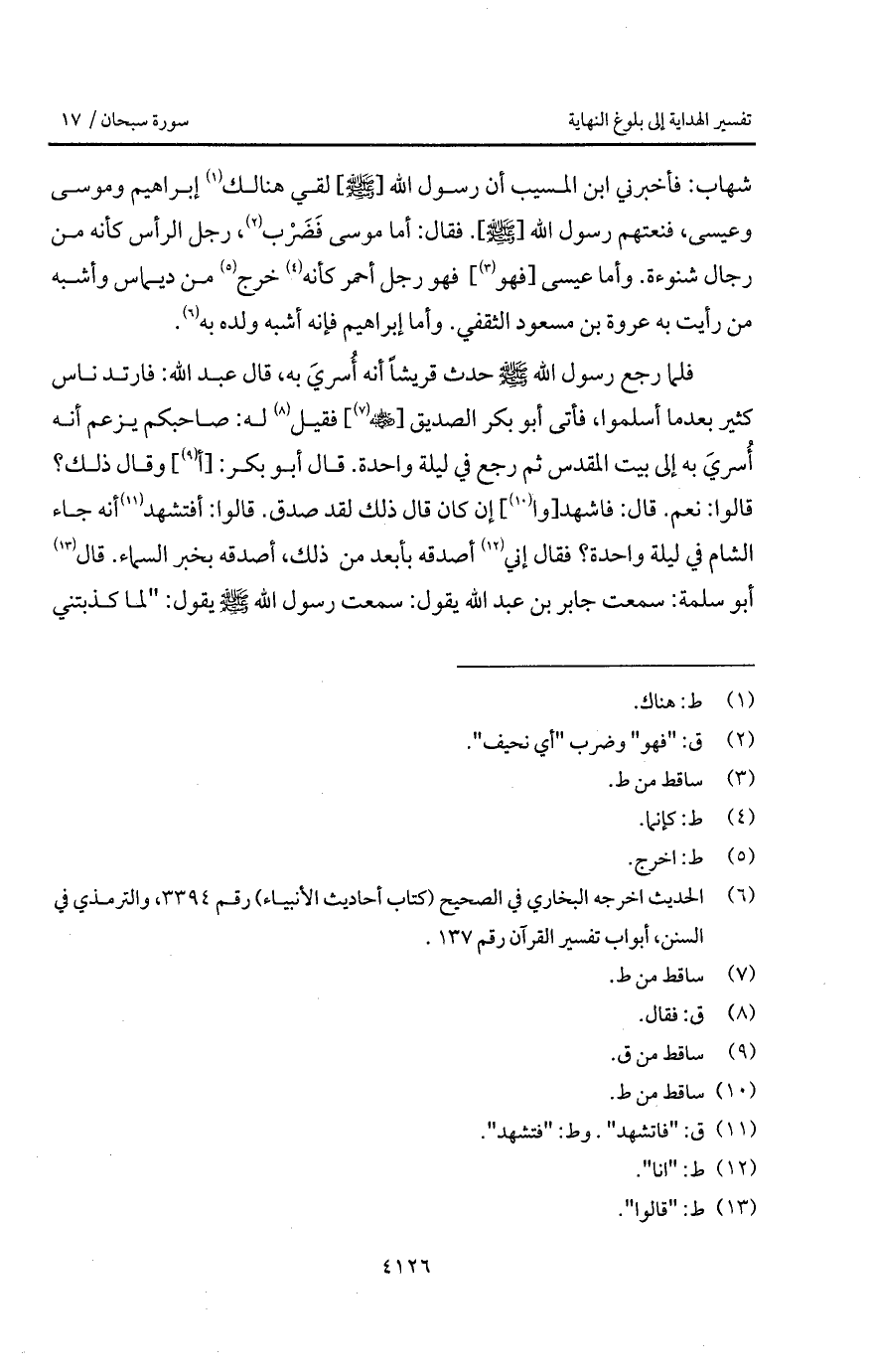 شهاب: فأخبرني ابن المسيب أن رسول الله [ A] لقي هنالك إبراهيم وموسى وعيسى، فنعتهم رسول الله [ A] . فقال: أما موسى فَضَرْب، رجل الرأس كأنه من رجال شنوة. وأما عيسى [فهو] فهو رجل أحمر كأنه خرج من ديماس وأشبه من رأيت به عروة بن مسعود الثقفي. وأما إبراهيم فإنه أشبه ولده به. فلما رجع رسول الله A قريشاً أنه أُسريَ به، قال عبد الله: فارتد ناس كثير بعدما أسلموا، فأتى أبو بكر الصديق [Bهـ] فقيل له: صاحبكم يزعم أنه أُسريَ به إلى بيت المقدس ثم رجع في ليلة واحدة. قال أبو بكر: [أ] وقال ذلك؟ قالوا: نعم. قال: فاشهد [وا] إن كان كان قال ذلك لقد صدق. قالوا: أفتشهد أنه جاء الشام في ليلة واحدة؟ فقال إني أصدقه بأبعد من ذلك، أصدقه بخبر السماء. قال أبو سلمة: سمعت جابر بن عبد الله يقول: سمعت رسول الله A يقول: لما كذبتني