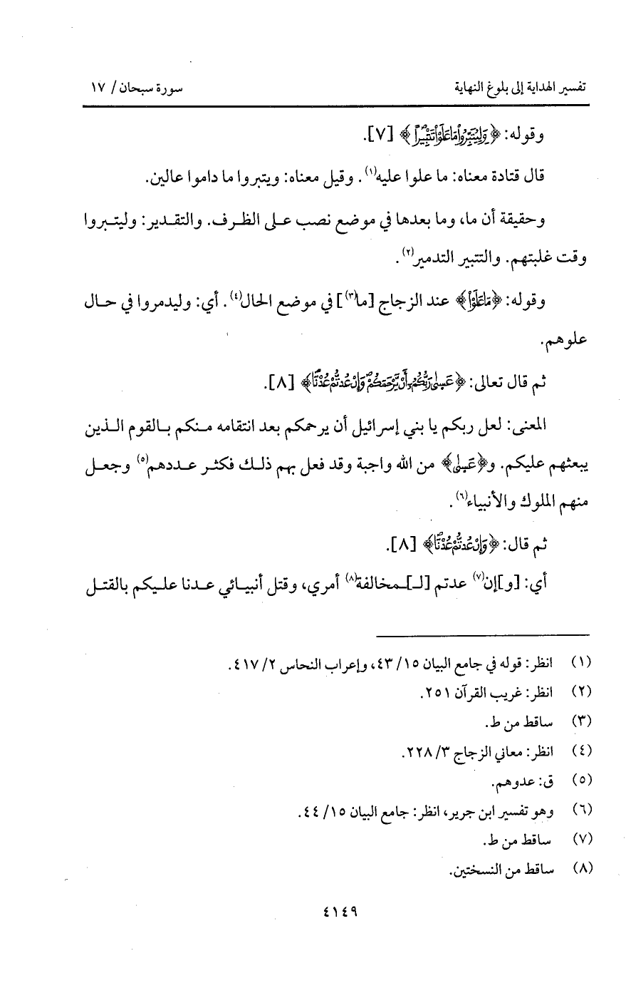 وقوله: {وَلِيُتَبِّرُواْ مَا عَلَوْاْ تَتْبِيراً}.