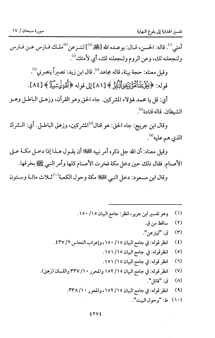 وقيل معناه: أن الله جل ذكره أمر نبيه عليه السلام أن يقول هذا إذا دخل مكة على الأصنام. فقال ذلك حين دخل مكة فخرت الأصنام كلها وأمر النبي A بخرقها.
