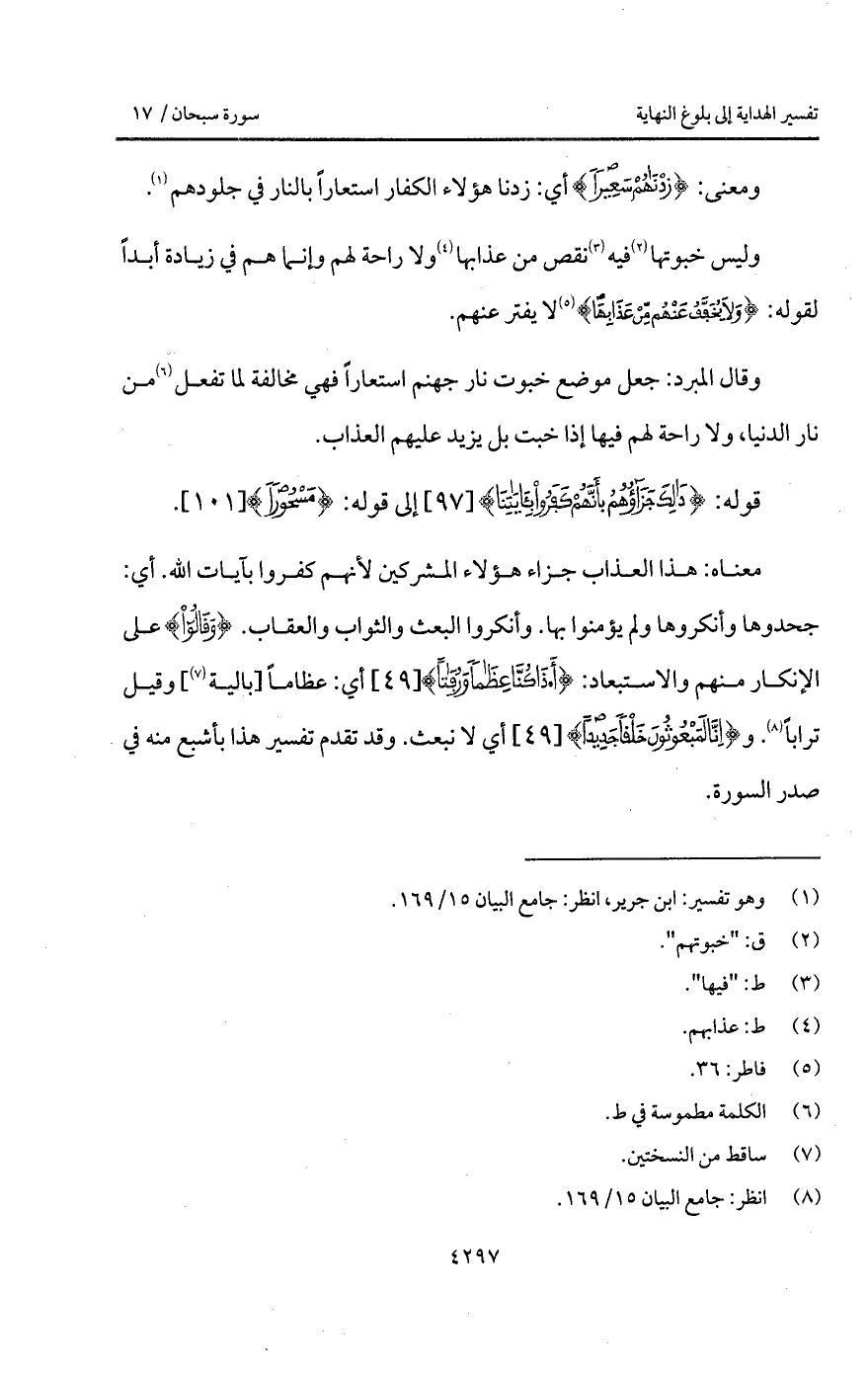 وليس خبوتها فيه نقص من عذابها ولا راحة لهم وإنما هم في زيادة أبداً لقوله: {وَلاَ يُخَفَّفُ عَنْهُمْ مِّنْ عَذَابِهَا} [فاطر: 36] لا يفتر عنهم.