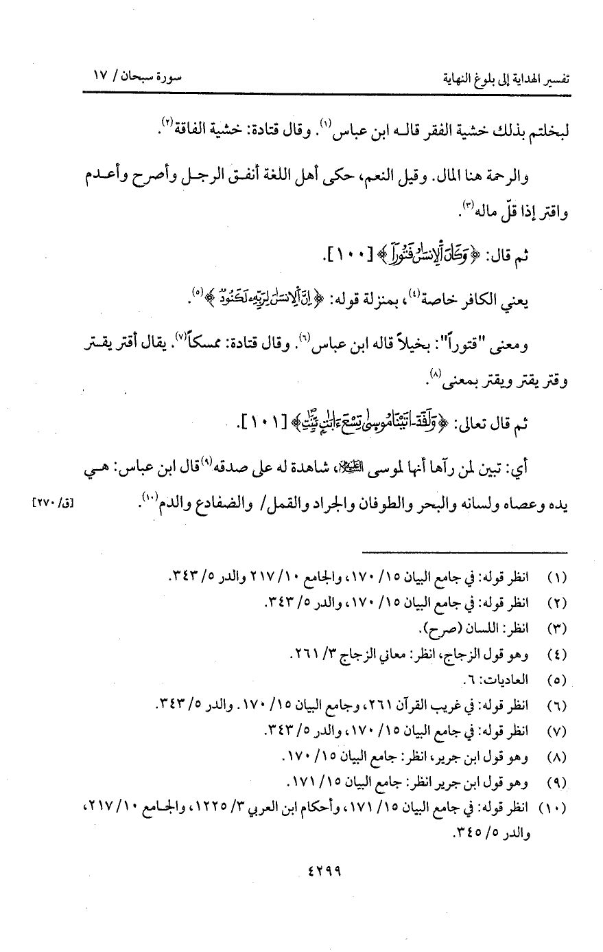 ومعنى " قتوراً ": بخيلاً قاله ابن عباس. وقال قتادة: ممسكاً. يقال أقتر يقتر وقتر يقتر ويقتر بمعنى.