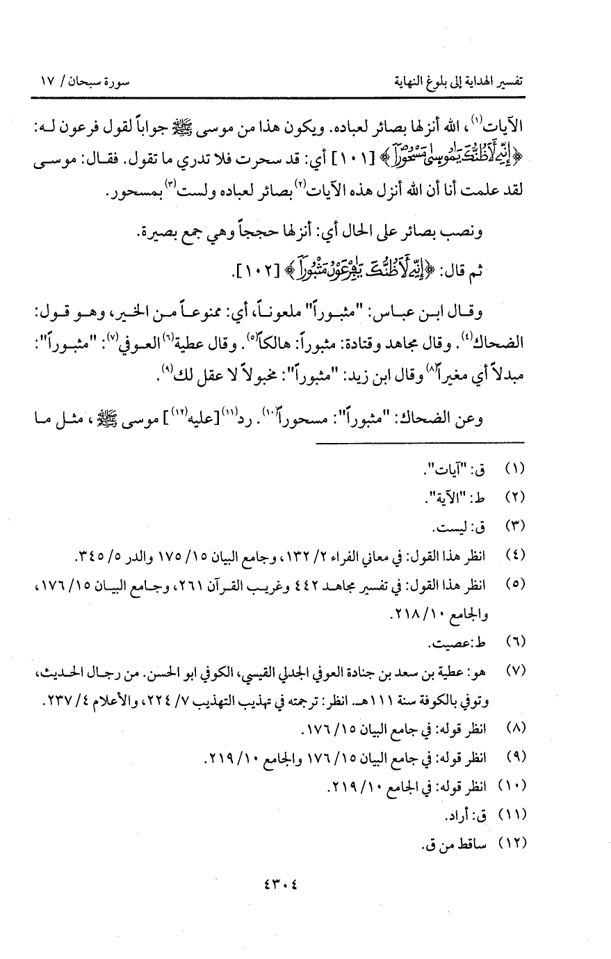 وقال ابن عباس: " مثبوراً " ملعوناً، أي: ممنوعاً من الخير، وهو قول: الضحاك. وقال مجاهد وقتادة: مثبوراً هالكاً. وقال عطية العوفي: " مثبوراً ": مبدلاً أي مغيراً وقال ابن زيد: " مثبوراً ": مخبولاً لا عقل لك.