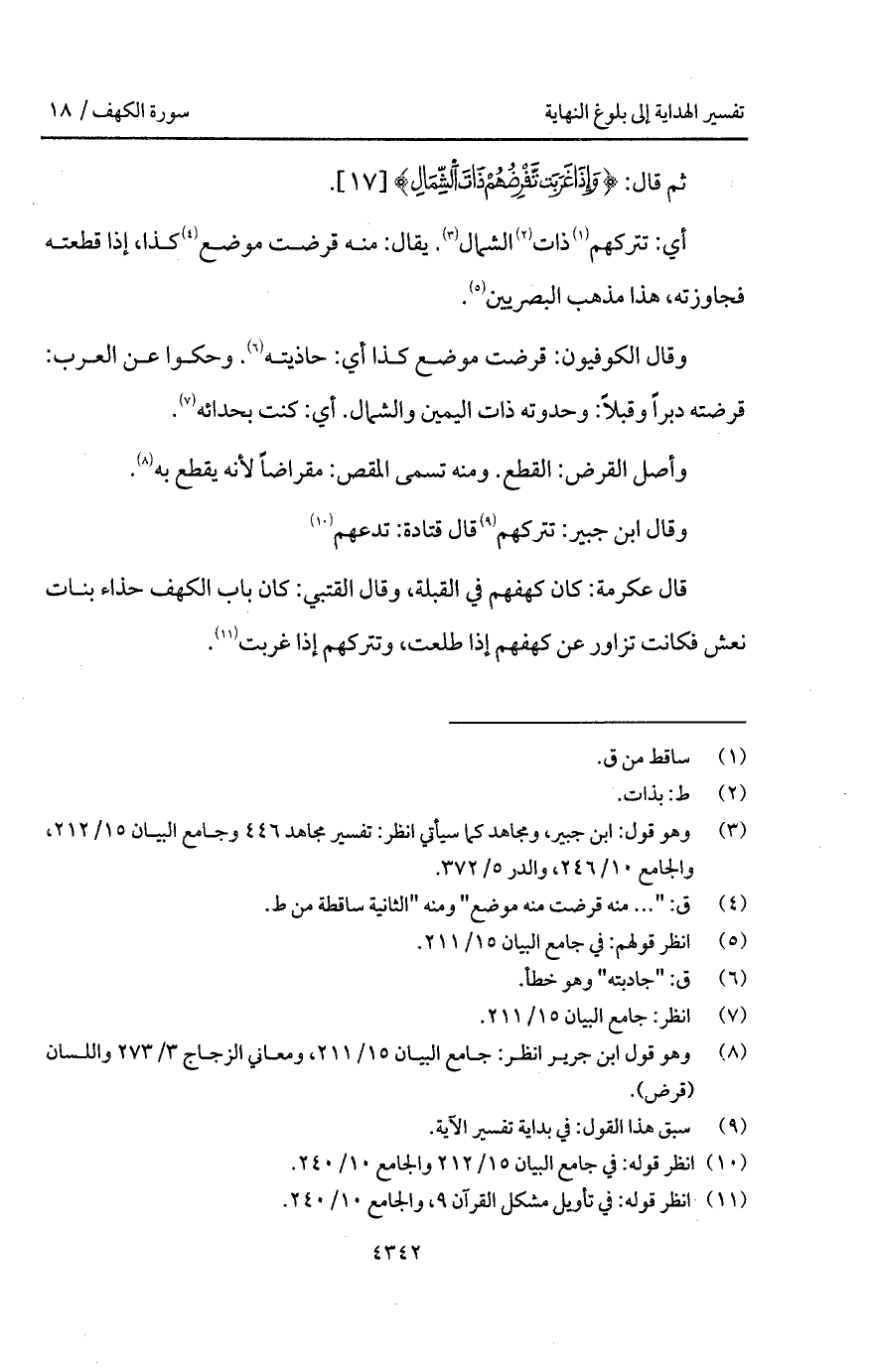 قال عكرمة: كان كهفهم في القبلة، وقال القتبي: كان باب الكهف حذاء بنات نعش فكانت تزاور عن كهفهم إذا طلعت، وتتركهم إذا غربت.