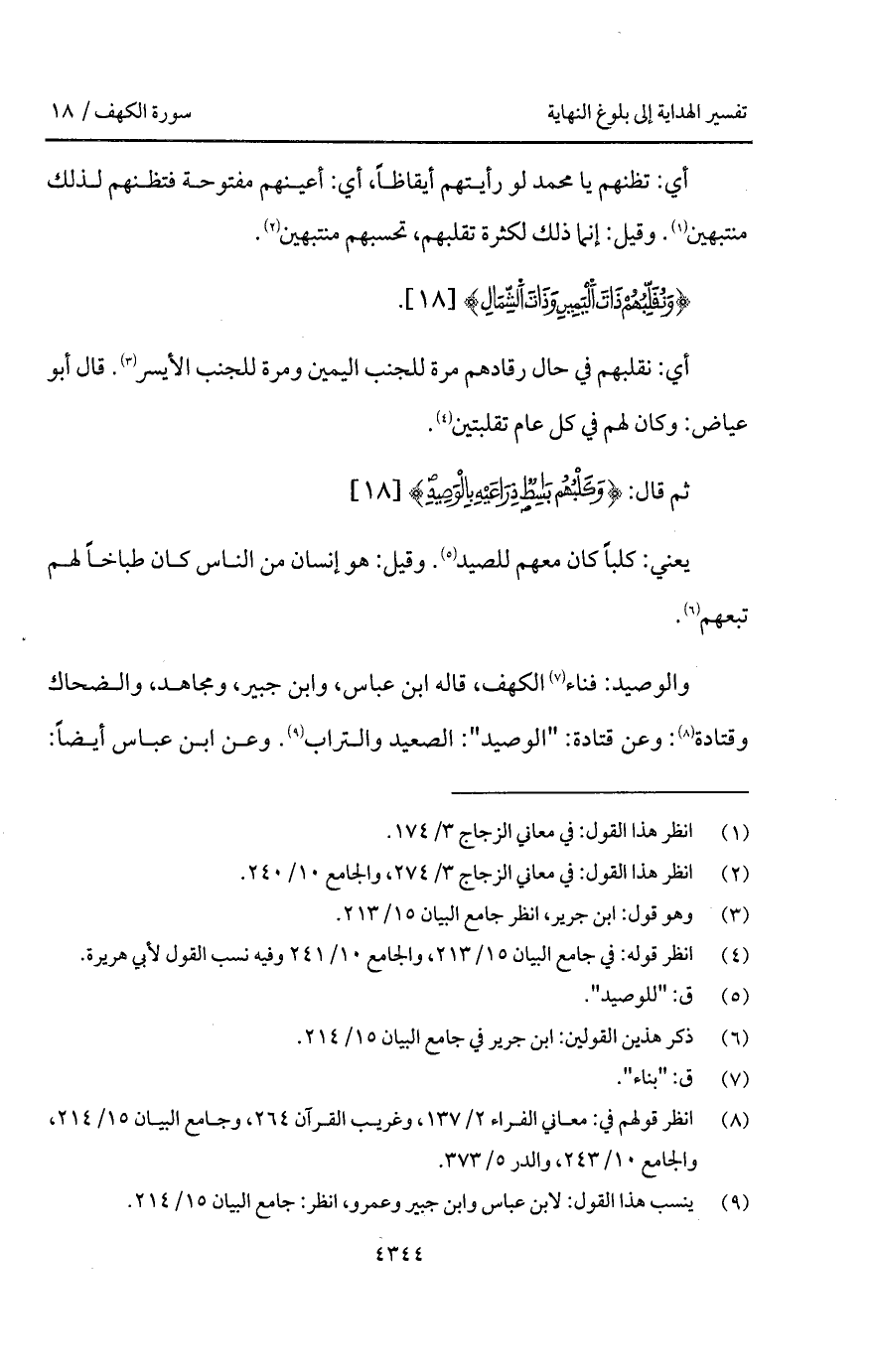 والوصيد: فناء الكهف، قاله ابن عباس، وابن جبير، ومجاهد، والضحاك وقتادة: وعن قتادة: " الوصيد ": الصعيد والتراب. وعن ابن عباس أيضاً: