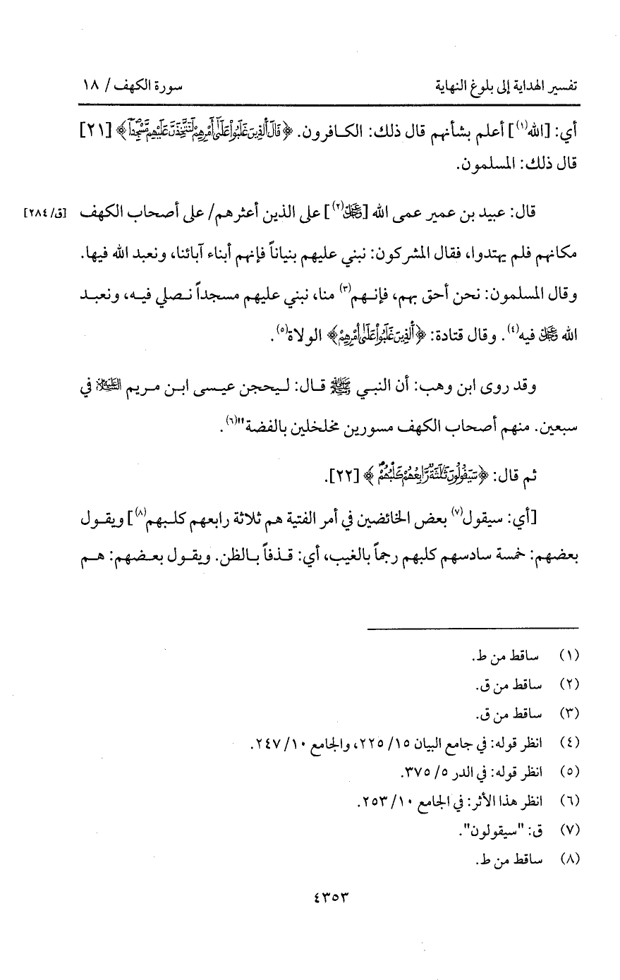 أي: [الله] أعلم بشأنهم قال ذلك: الكافرون. {قَالَ الذين غَلَبُواْ على أَمْرِهِمْ لَنَتَّخِذَنَّ عَلَيْهِمْ مَّسْجِداً} قال ذلك: المسلمون.