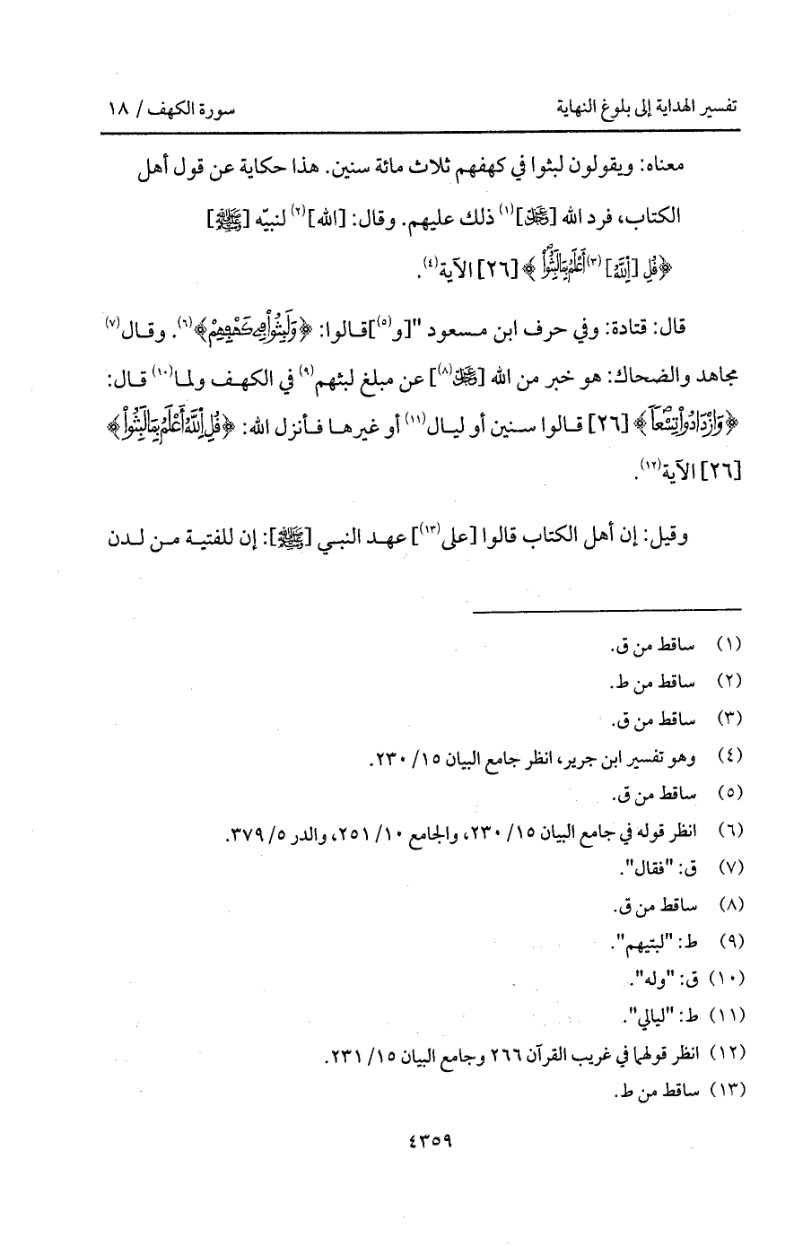 معناه: ويقولون لبثوا في كهفهم ثلاث مائة سنين. هذا حكاية عن قول أهل الكتاب، فرد الله [ D] ذلك عليهم. وقال: [الله] لنبيّه [ A]