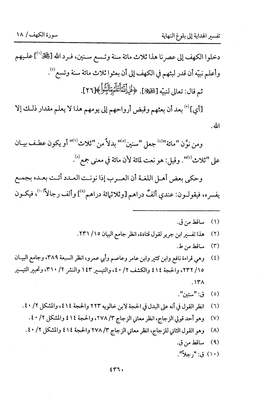 دخلوا الكهف إلى عصرنا هذا ثلاث مائة سنة وتسع سنين، فرد الله [ D] عليهم وأعلم نبيّه أن قدر لبثهم في الكهف إلى أن بعثوا ثلاث مائة سنة وتسع.