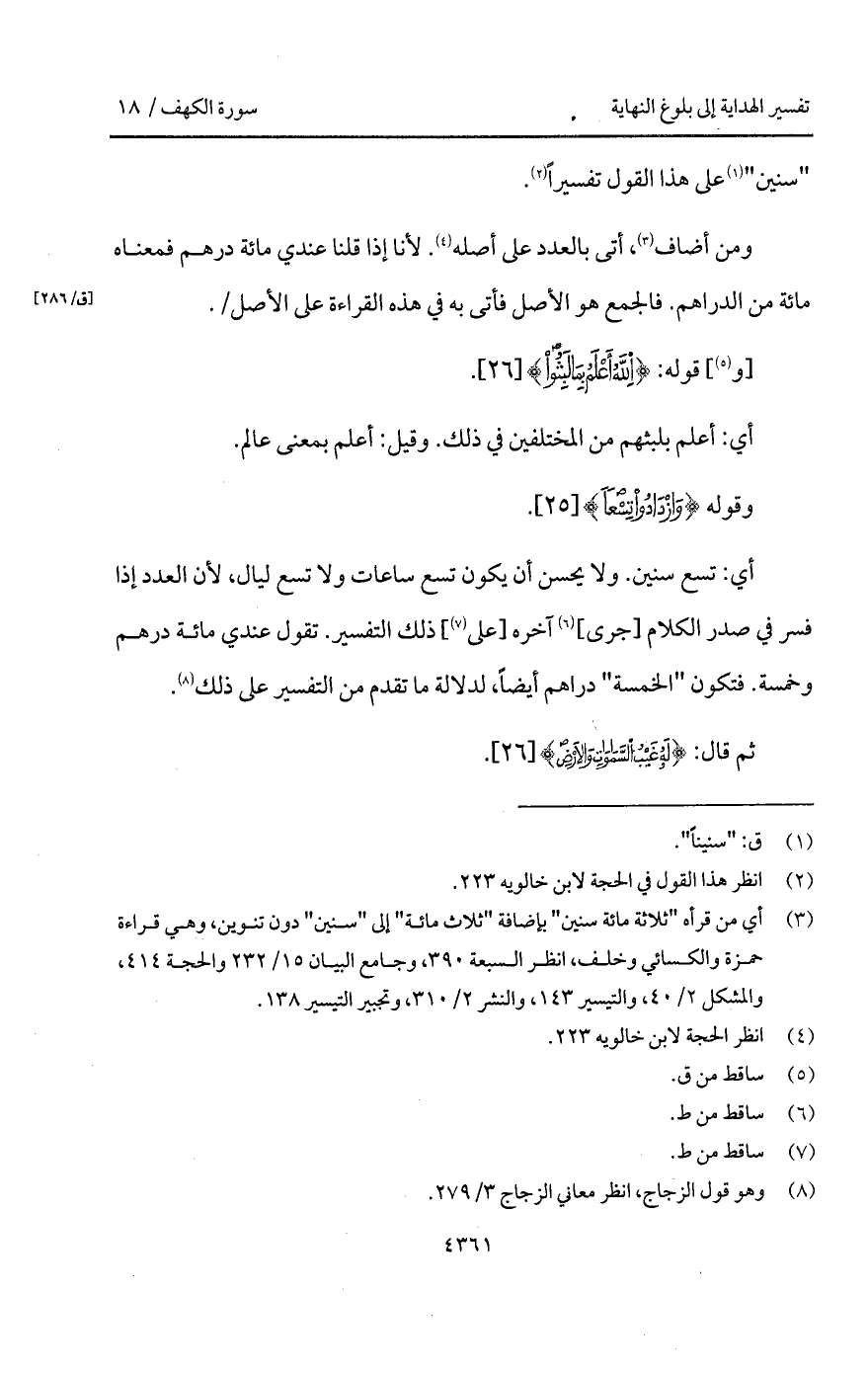 " سنين " على هذا القول تفسيراً.