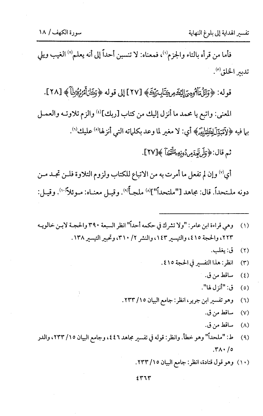 قوله: {واتل مَآ أُوْحِيَ إِلَيْكَ مِن كِتَابِ رَبِّكَ}.
