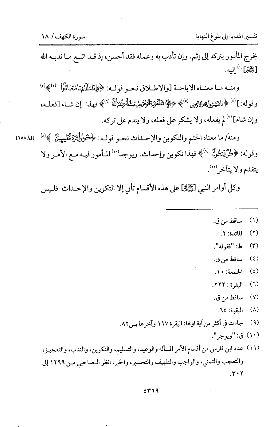 وكل أوامر النبي [ A] على هذه الأقسام تأتي إلا التكوين والإحداث فليس