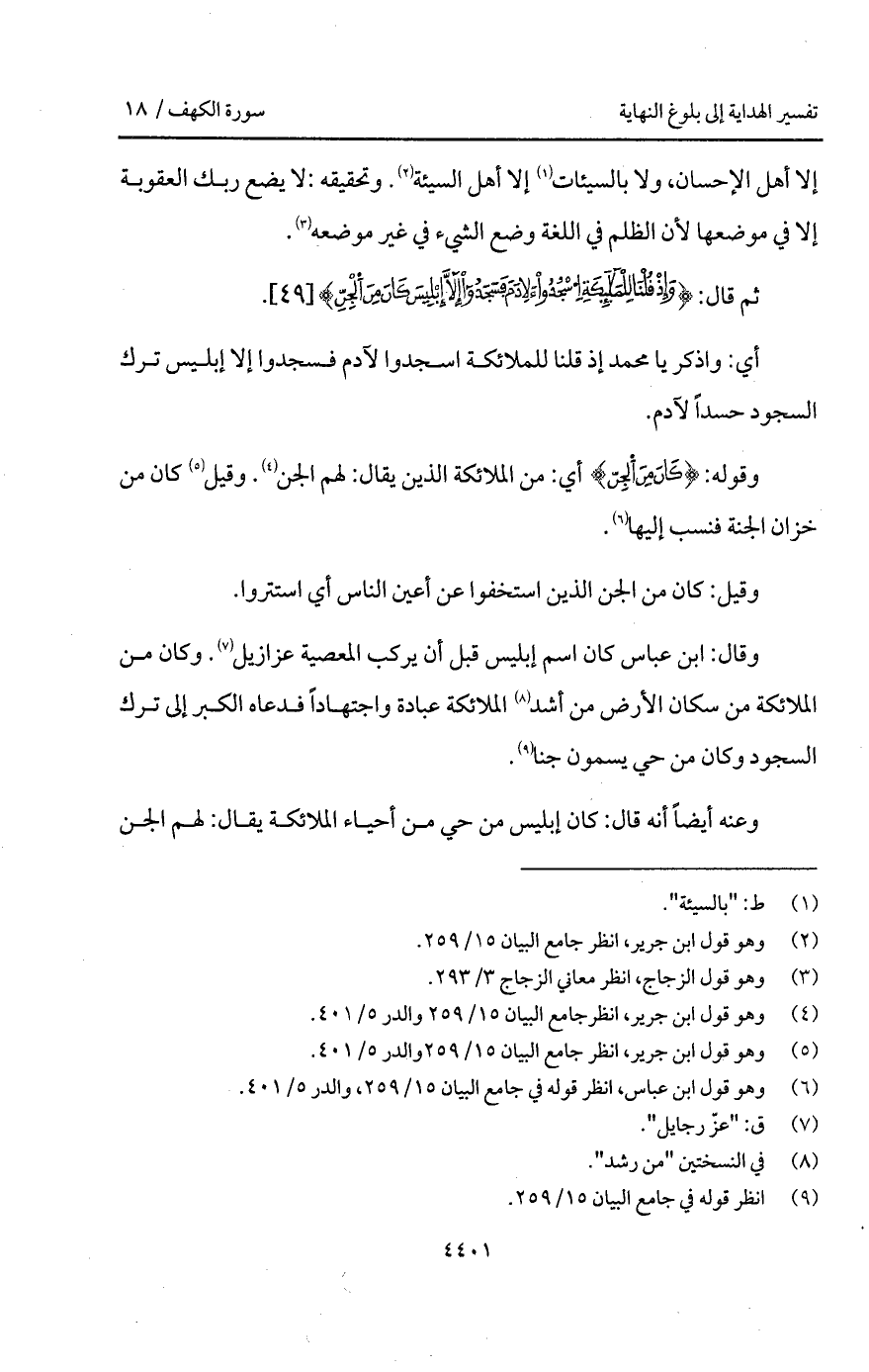 وعنه أيضاً أنه قال: كان إبليس من حي من أحياء الملائكة يقال: لهم الجن