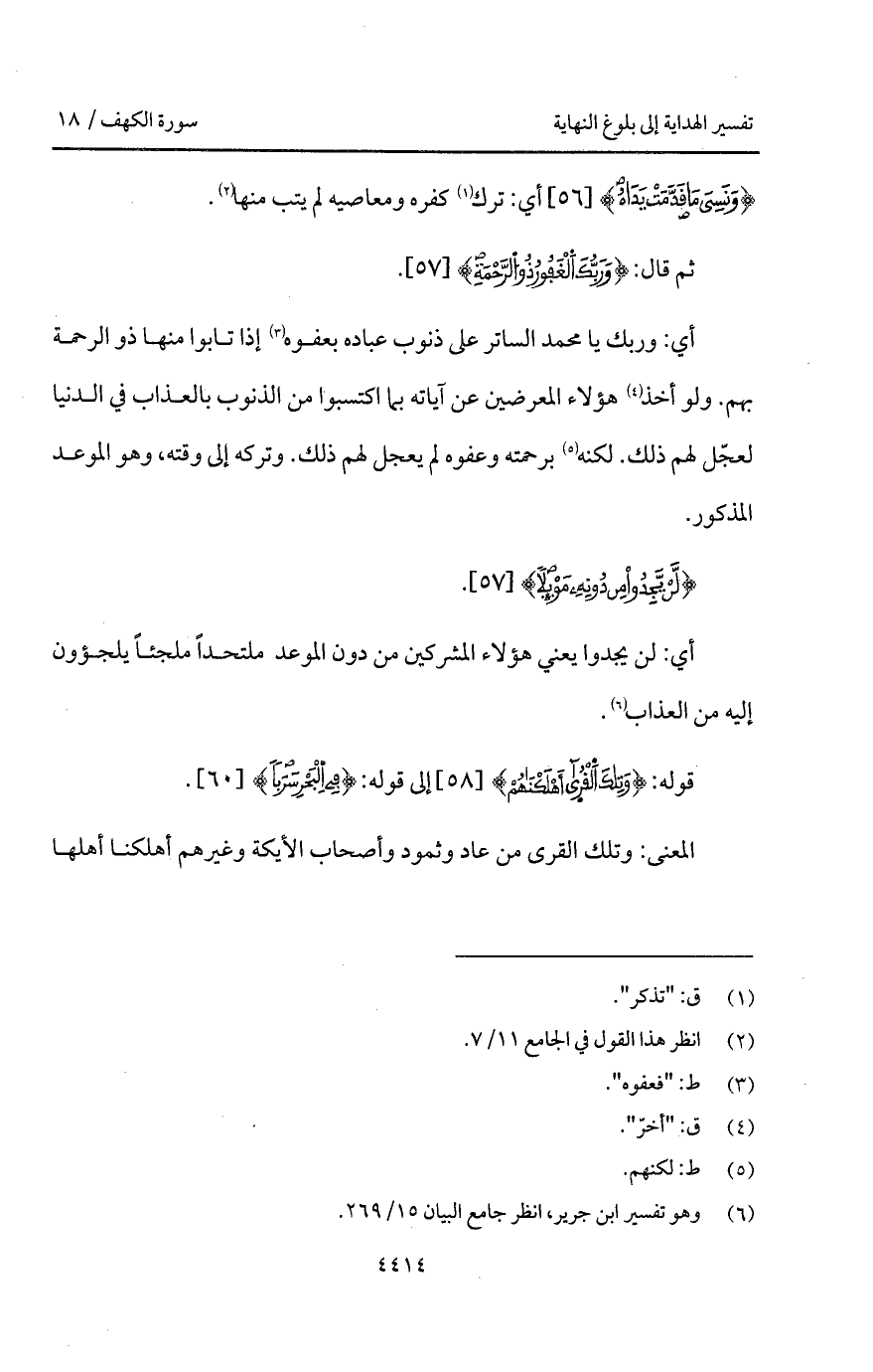 أي: وربك يا محمد الساتر على ذنوب عباده بعفوه إذا تابوا منها ذو الرحمة بهم. ولو أخذ هؤلاء المعرضين عن آياته بما اكتسبوا من الذنوب بالعذاب في الدنيا لعجّل لهم ذلك. لكنه برحمته وعفوه لم يعجل لهم ذلك. وتركه إلى وقته، وهو الموعد المذكور.
