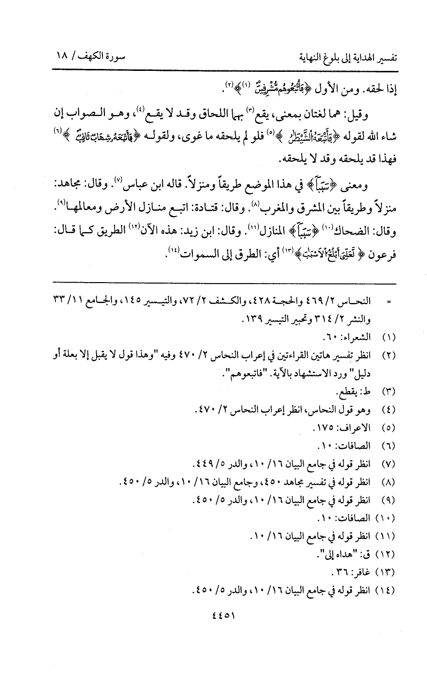 وقيل: هما لغتان بمعنى، يقع بهما اللحاق وقد لا يقع، وهو الصواب إن شاء الله لقوله {فَأَتْبَعَهُ الشيطان} [الأعراف: 175] فلو لم يلحقه ما غوى، ولقوله {فَأَتْبَعَهُ شِهَابٌ ثَاقِبٌ} [الصافات: 10] فهذا قد يلحقه وقد لا يلحقه.