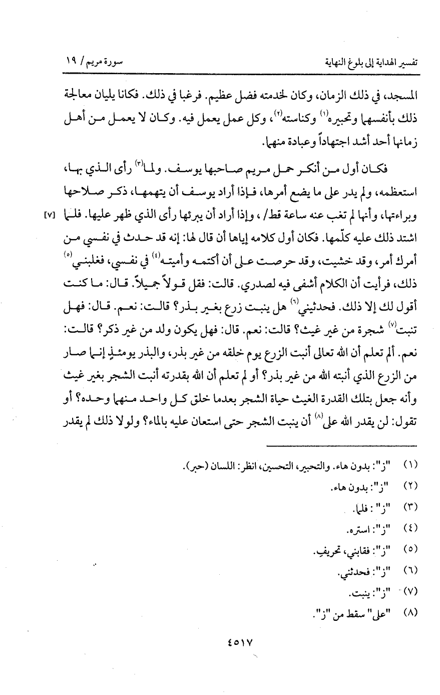 فكان أول من أنكر حمل مريم صاحبها يوسف. ولما رأى الذي بها، استعظمه، ولم يدر على ما يضع أمرها، فإذا أراد يوسف أن يتهمها، ذكر صلاحها وبراءتها، وأنها لم تغب عنه ساعة قط /، وإذا أراد يبرئها رأى الذي ظهر عليها. فلما اشتد ذلك عليه كلّمها. فكان أول كلامه إياها أن قال لها: إنه قد حدث في نفسي من أمر أمر، وقد خشيت، وقد حرصت على أن أكتمه وأميته في نفسي، فغلبني ذلك، فرأيت أن الكلام أشفى فيه لصدري. قالت: فقل قولاً جميلاً. قال: ما كنت أقول لك إلا ذلك. فحدثيني هل ينبت زرع بغير بذر؟ قالت: نعم. قال: فهل تنبت شجرة من غير غيث؟ قالت: نعم. قال: فهل يكون ولد من غير ذكر؟ قالت: نعم. ألم تعلم أن الله تعالى أنبت الزرع يوم خلقه من غير بذر، والبذر يومئذٍ إنما صار من الزرع الذي أنبته الله من غير بذر؟ أولم تعلم ان الله بقدرته أنبت الشجر بغير غيث وأنه جعل بتلك القدرة الغيث حياة الشجر بعدما خلق كل واحد منهما وحده؟ أو تقول: لن يقدر الله على أن ينبت الشجر حتى استعان عليه بالماء؟ ولولا ذلك لم يقدر