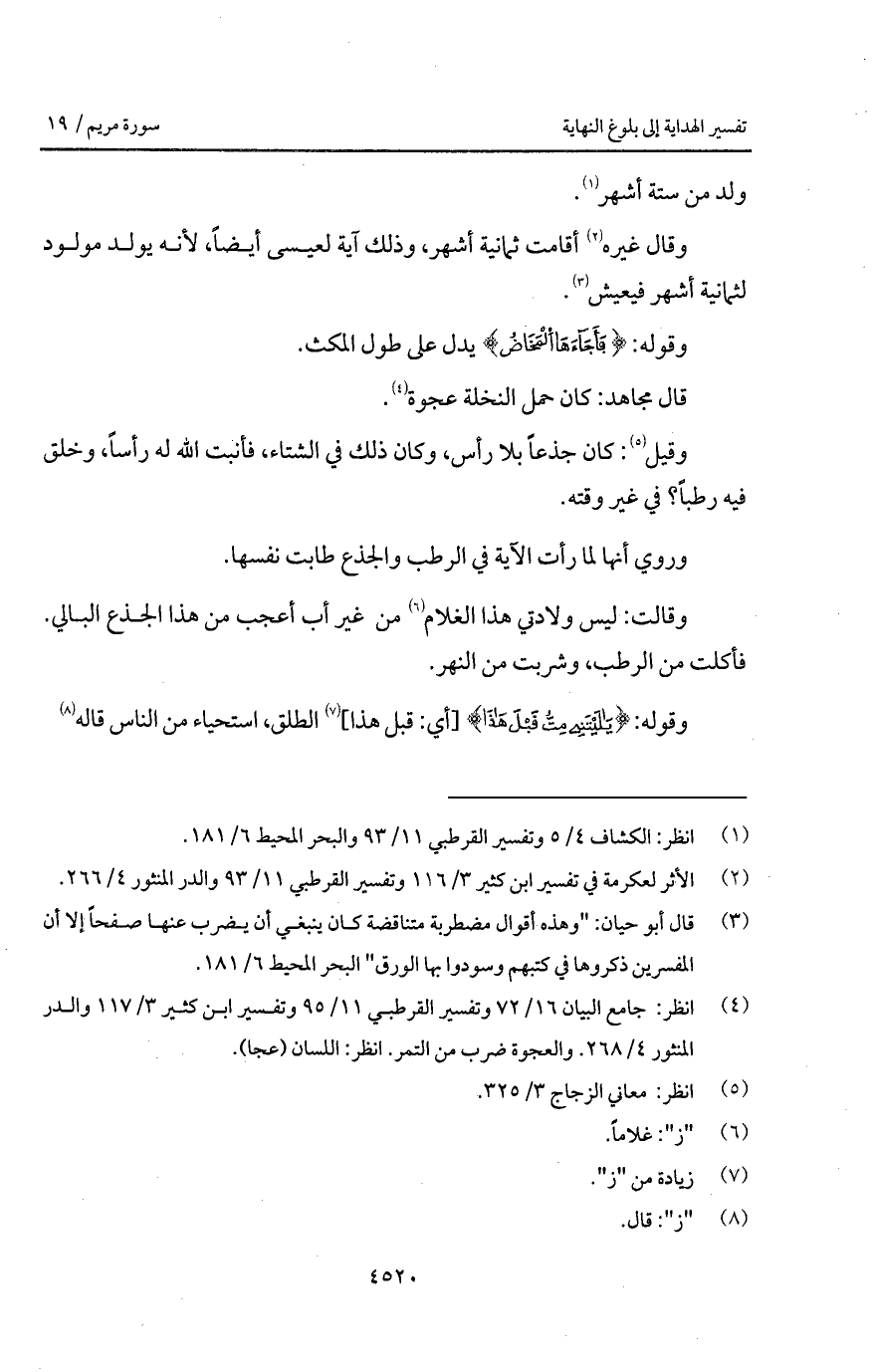 وقال غيره أقامت ثمانية أشهر، وذلك آية لعيسى أيضاً، لأنه يولد مولود لثمانية أشهر فيعيش.