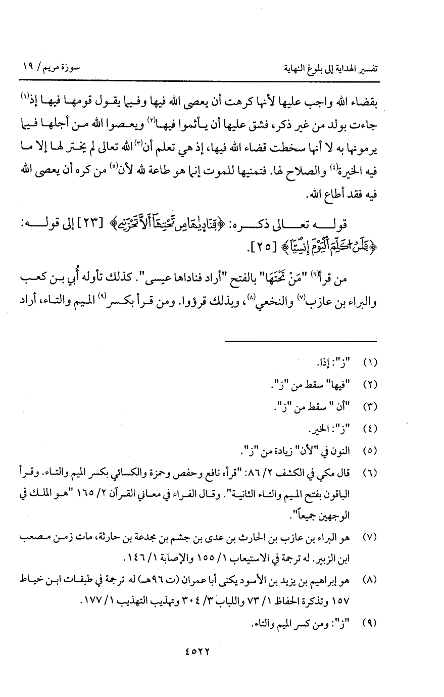 من قرأ " مَنْ تَحْتَهَا " بالفتح " أراد فناداها عيسى ". كذلك تأويله أُبي بهذا كعب والبراء بن عازب والنخعي، وبذلك قرؤوا. ومن قرأ بكسر الميم والتاء، أراد