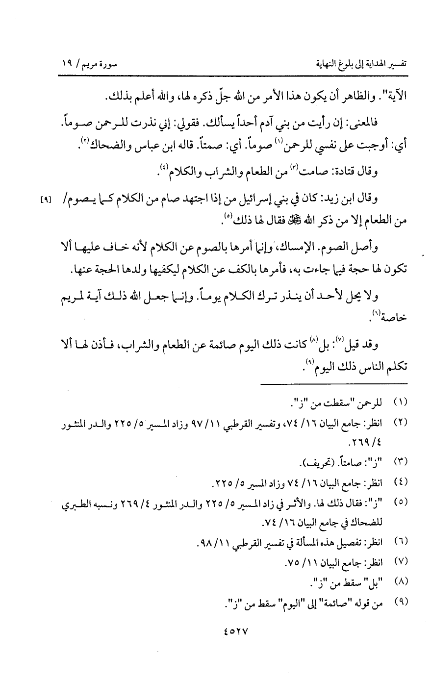 وأصل الصوم. الإمساك، وإنما أمرها بالصوم عن الكلام لأنه خاف عليها ألا تكون لها حجة فيما جاءت به، فأمرها بالكف عن الكلام ليكفيها ولدها الحجة عنها.