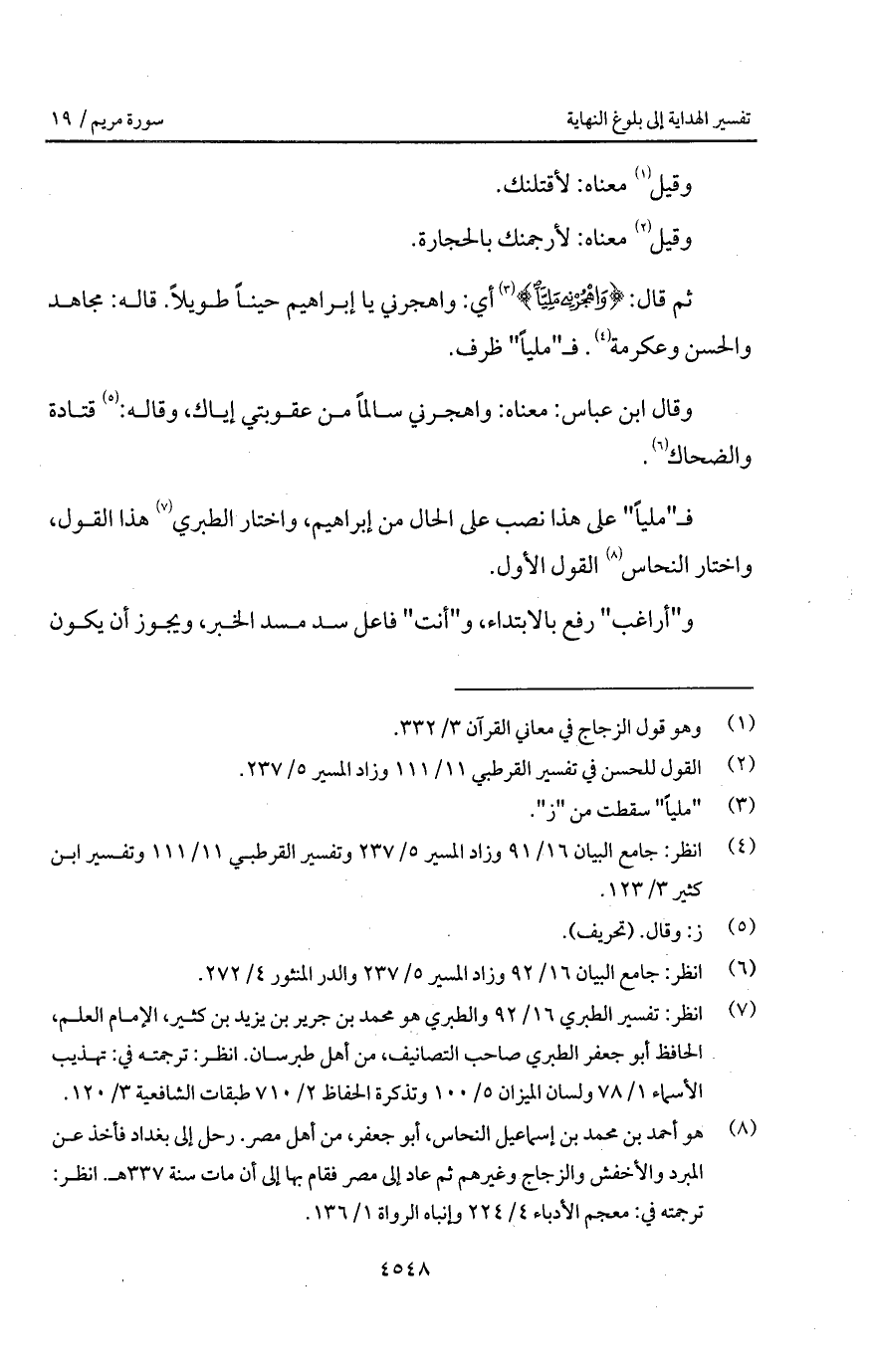 ف " ملياً " على هذا نصب على الحال من إبراهيم، واختار الطبري هذا القول، واختار النحاس القول الأول.