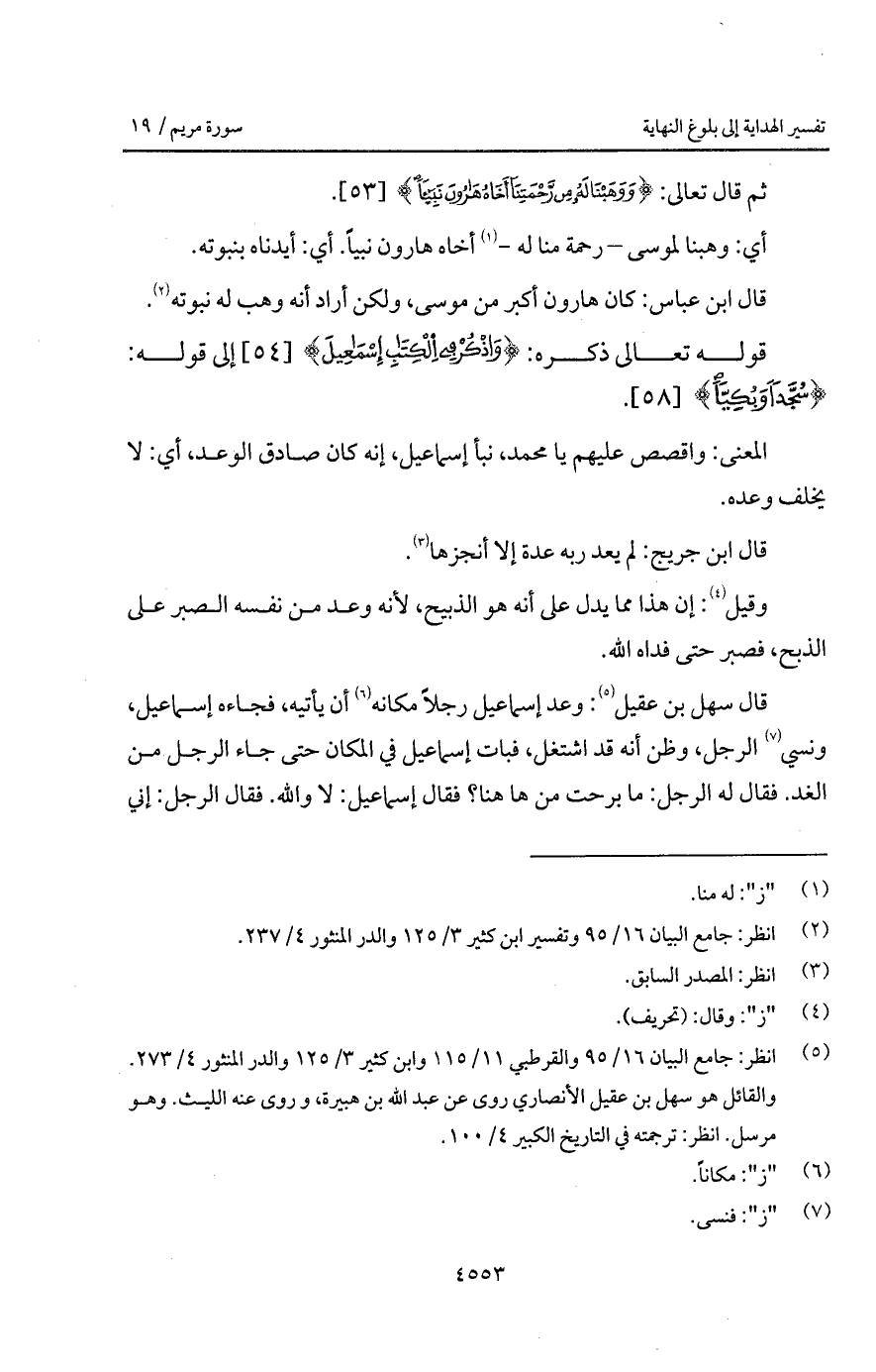 قوله تعالى: {واذكر فِي الكتاب إِسْمَاعِيلَ} إلى قوله: {سُجَّداً وَبُكِيّاً}.