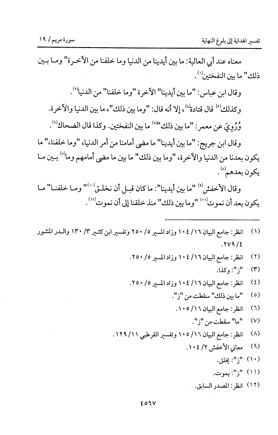 وقال الأخفش " ما بين أيدينا ": ما كان قبل أن نخلق " وما خلفنا " ما يكون بعد أن تموت " وما بين ذلك " منذ خلقنا إلى أن نموت.