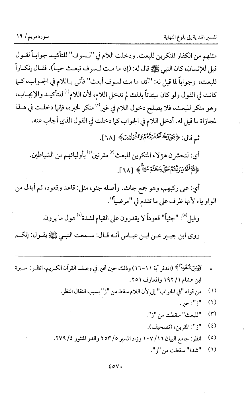 {ثُمَّ لَنُحْضِرَنَّهُمْ حَوْلَ جَهَنَّمَ جِثِيّاً}.